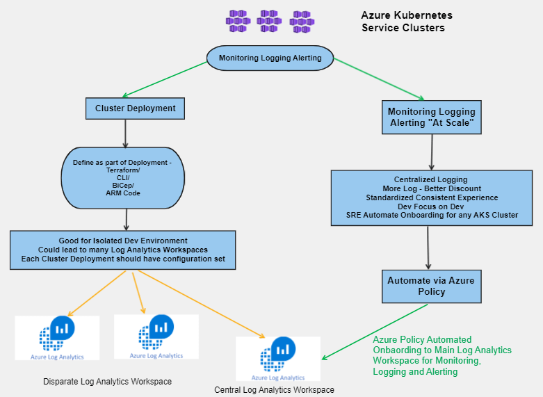 Azure Container Monitoring for Azure Kubernetes Services (AKS) is a vital aspect that varies from one deployment to another. Although enabling AKS Diagnostics Settings and sending logs to a Log Analytics Workspace might seem like enough, there are still a few moving parts to consider. In this blog post, we will discuss the importance of Container Insight and how to automatically and efficiently onboard it for any cluster.