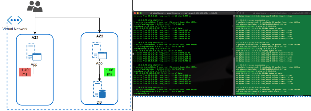 So thought of checking it, actually how workload behaves in a different tier or different scenario behave. I choose platform as Azure to test as Azure is the latest entrant in AZ concept and very recently they have also come up with Proximity Placement Group (something similar to AWS Placement Group). Here are some of the findings when I performed basic PING Test across;